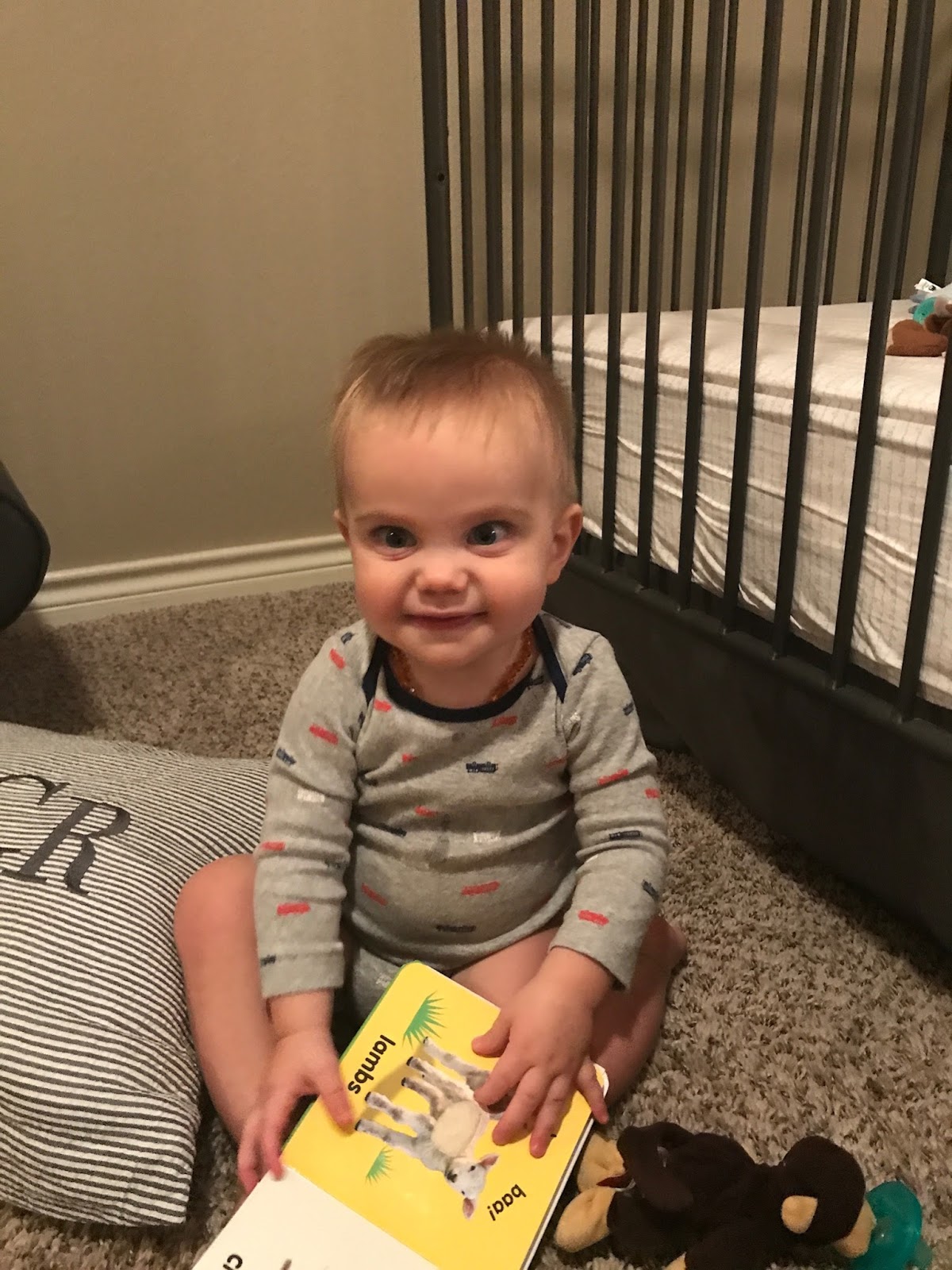 -Sleep is great! Sleeping 6pm to 7am, with 1 2-3 hour nap/day. He still has to sleep with his "babies"- 4 wubbanubs (pacifiers) and he likes to gather them up and sleep on top of them! He gets SO excited for his babies- that's going to be another hard one to break-He eats ALL things, especially carbs and was weaned from the boob at 10mo and bottle at 12mo with no issue